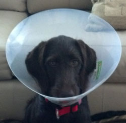 Dad & Mom said it had something to do with me being a No! No! Bad dog and pulling out stitches (whatever they are).